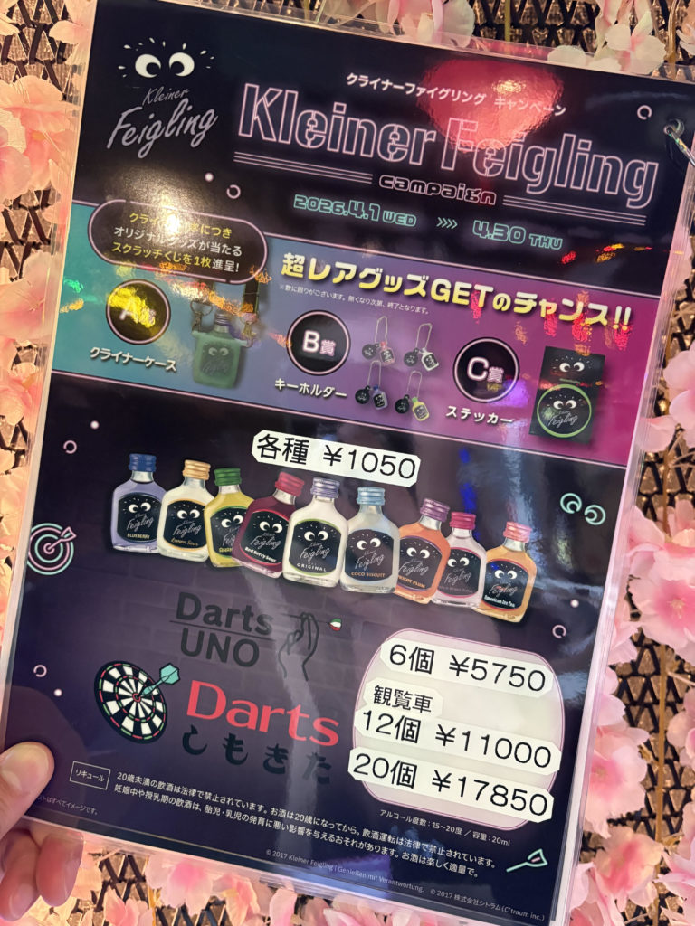 UNO全店&ダーツしもきたで行いますのでクライナー飲んでオリジナルグッズ当てちゃいましょ!